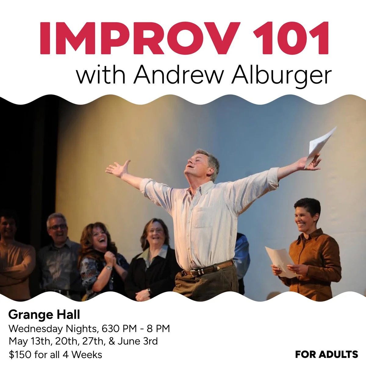 Andrew has been teaching acting & improv to students of all ages for over 30 years. In this 4 week workshop you will learn the basics of improvisation thru fun games and scenes that will have you laugh while you learn. It’s not about making jokes or trying to be funny. It’s about finding the humor in heightened real life situations. You'll focus on finding the positive, the agreements, the yes.